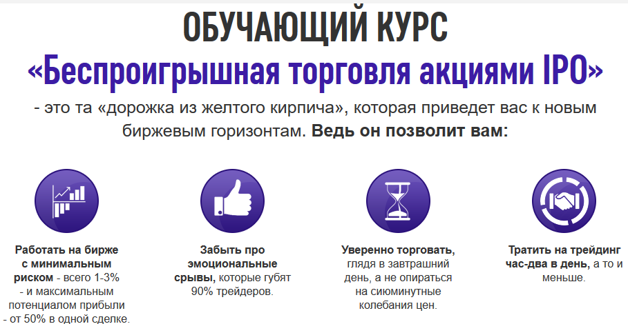 От 50% в год и более - именно столько вы с легкостью сможете зарабатывать, пройдя курс «Беспроигрышная торговля акциями IPO».