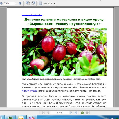 К видео курсу я приложу PDF отчет с дополнительными материалами и рекомендациями по выращиванию клюквы: