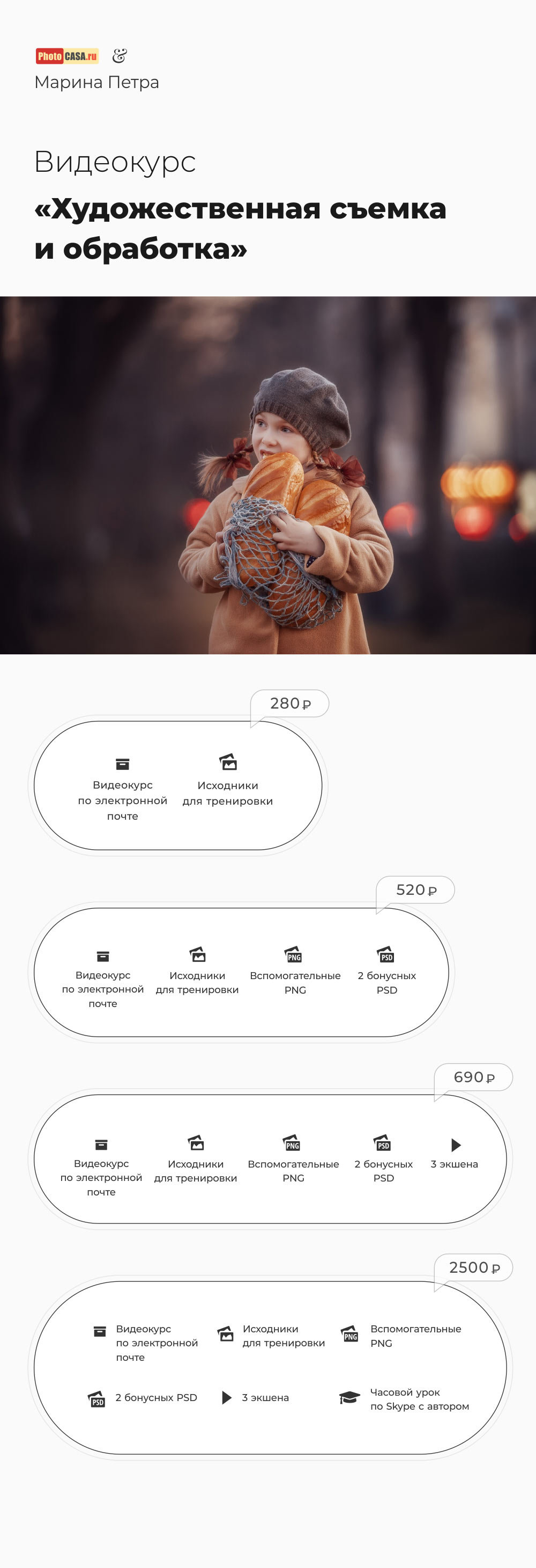 Видеокурс «Художественная съемка и обработка фотографий от Марины Петры» - это несколько часов полезных секретов и авторских уроков по обработке!