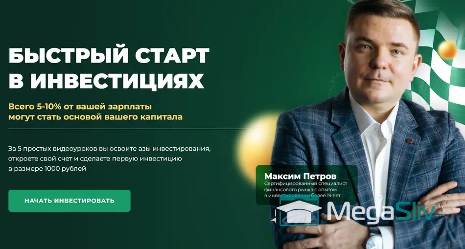 За 5 простых видеоуроков вы освоите азы инвестирования, откроете свой счет и сделаете первую инвестицию в размере 1000 рублей