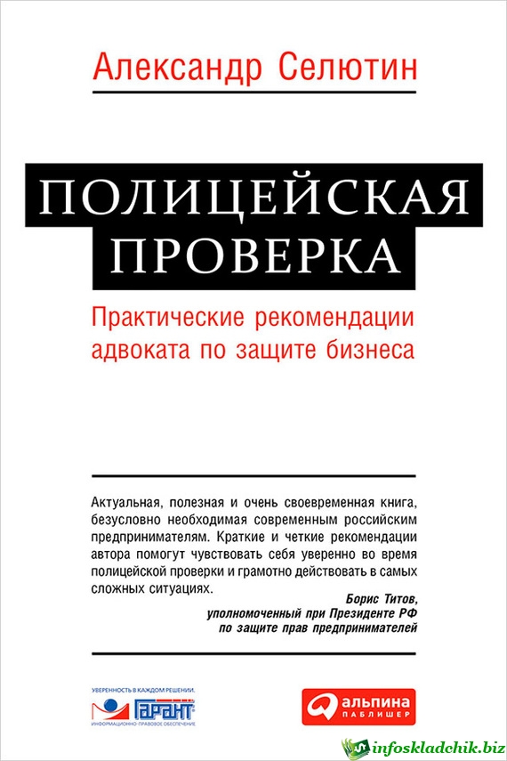 Описание: Полицейская проверка, внезапно нагрянувшая в офис компании, – огромный стресс для любого руководителя и угроза жизнеспособности компании. Книга известного адвоката Александра Селютина поможет вам быть заранее готовым к подобным проверкам и позволит пройти ее с минимальным ущербом. Комплекс подготовительных мер по обеспечению безопасности, четкие пошаговые рекомендации по поведению руководителей и сотрудников во время проверки, ссылки на законодательные акты, образцы документов, которые обязаны предоставить полицейские при проведении проверки, ― все это есть в книге, которая должна быть на рабочем столе руководителя любой компании.