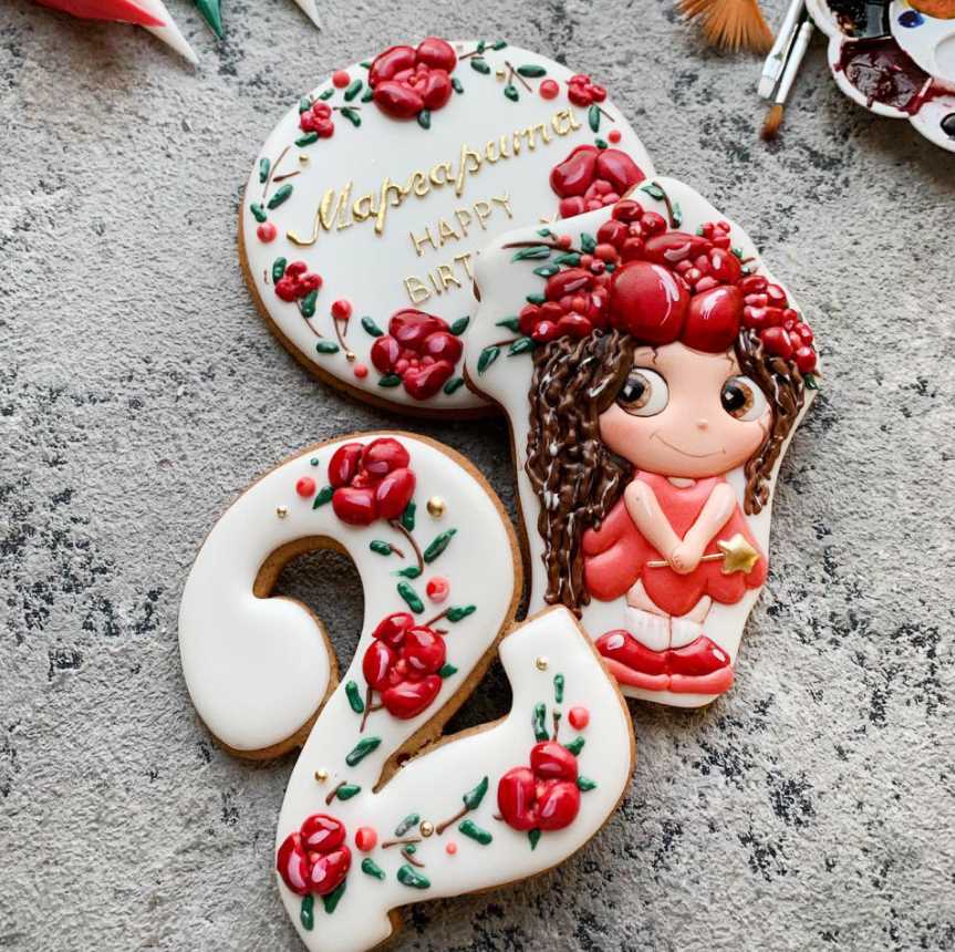 Роспись пряничков «Девочка+цифра+надпись» [Мария Ермолаева]