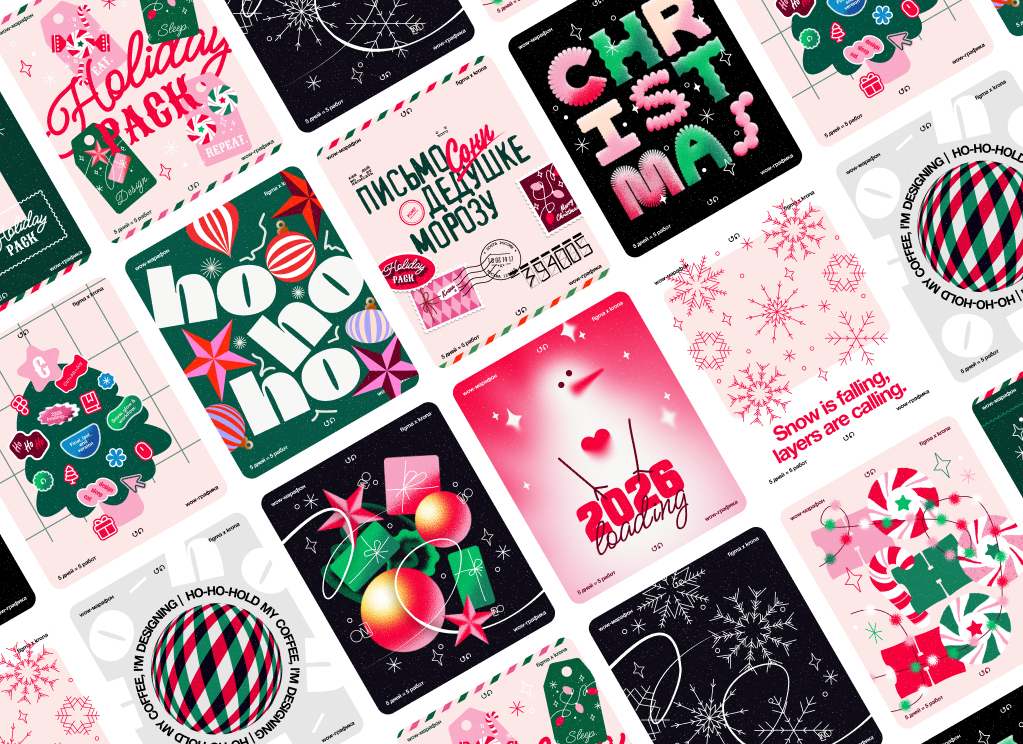 За 5 дней создашь постеры, открытки, марки и стикеры в Figma, разберёшься с эффектами, булевыми операциями, кистями и паттернами — и соберёшь целую коллекцию праздничных работ.