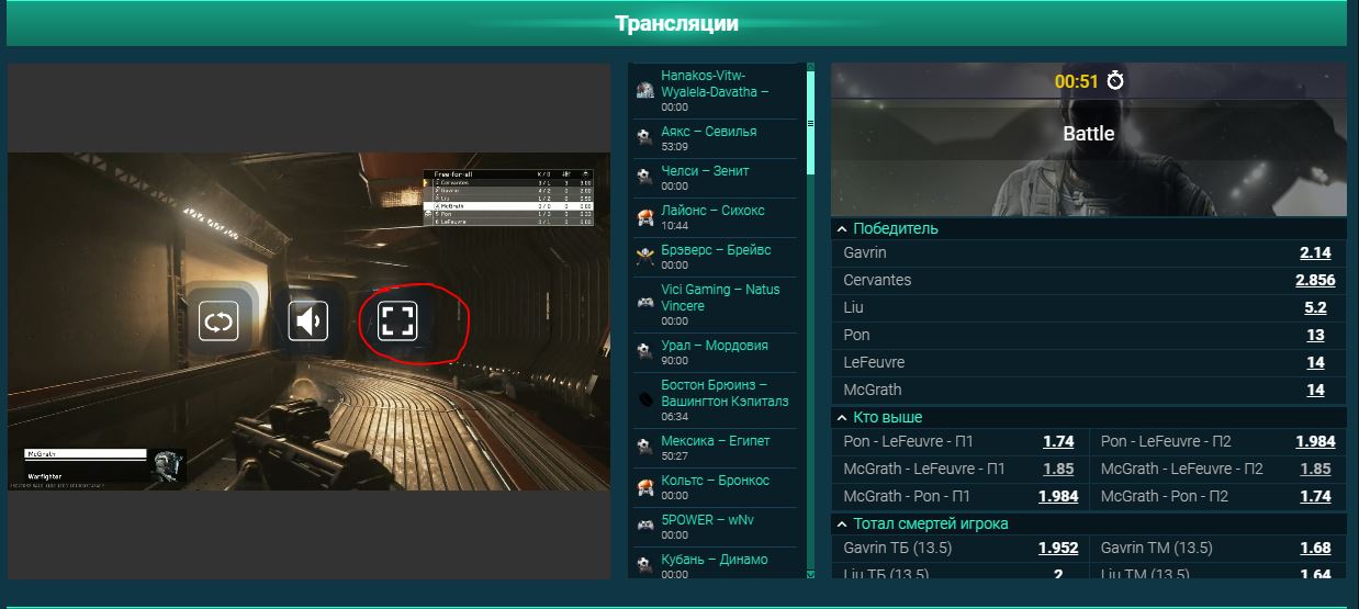 Выбираем матч и ждём его начала.