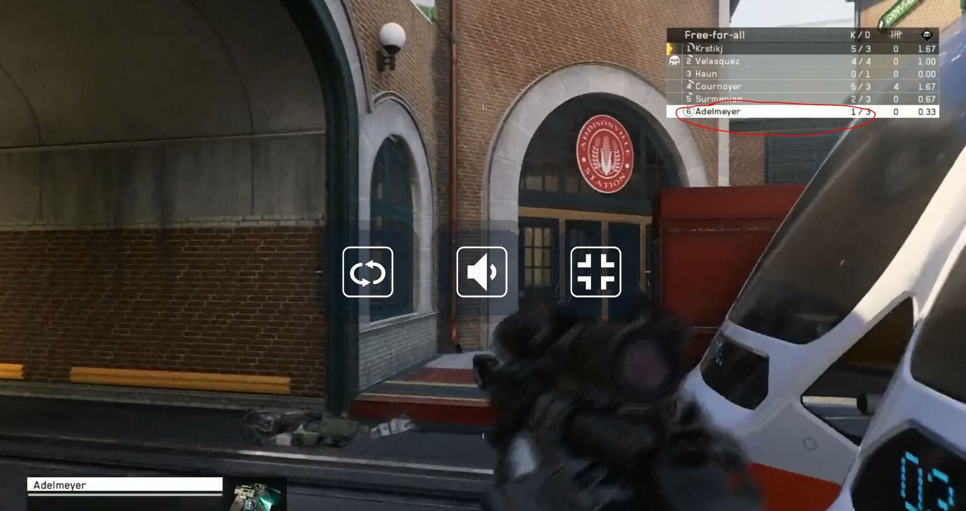 2) Матч начался. Переходим в полноэкранный режим и смотрим кто играет с болтовкой.
