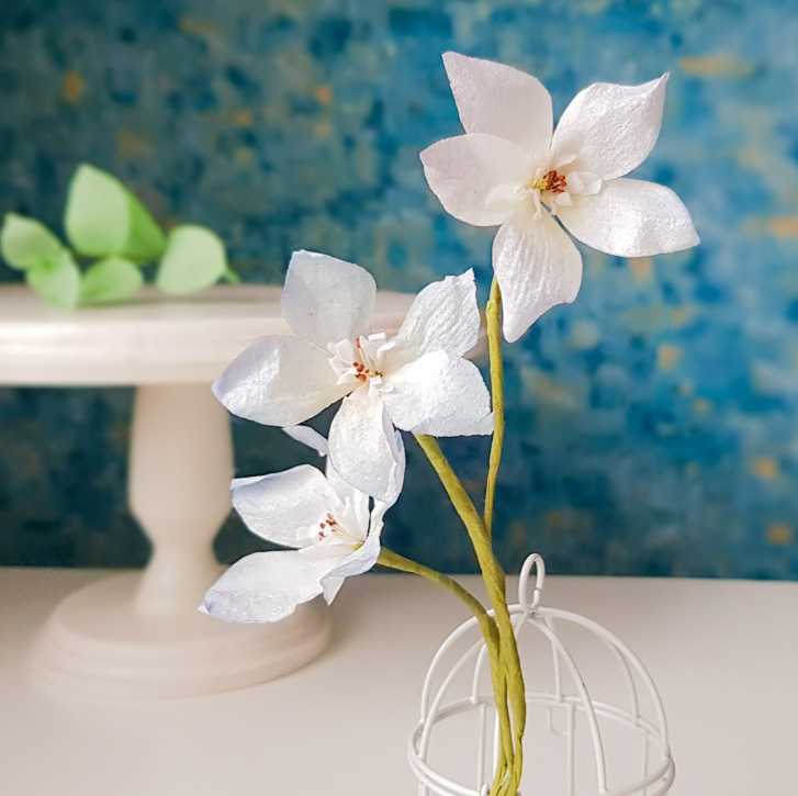 Гибкий стебель, нежные полупрозрачные лепестки… это дельфиниум. Нет, его не нужно ставить в вазу, он сделан из вафельной бумаги, хотя вид этого цветка может обмануть кого угодно ― настолько он правдоподобен.