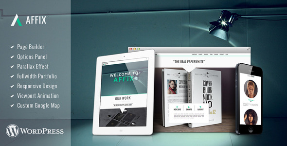 Affix - новая одностраничная адаптивная премиум Wordpress тема. Идеально подходит для сайтов портфолио, фотографов, фриланса или бизнеса.